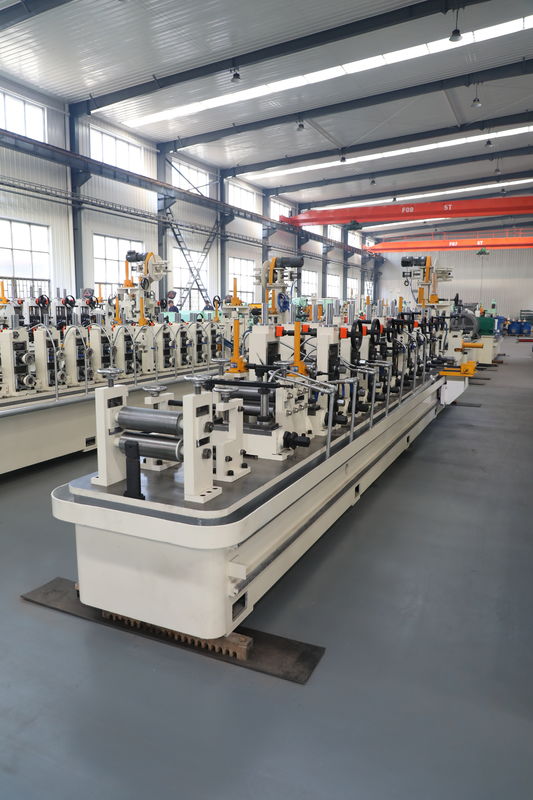 Descolador→ Máquina de corte e soldagem→ Acumulador (gaiola) → Máquina de formação→ Soldadura HF→ Máquina de dimensionamento→ Serra voadora (serra fria) → Tabela de esgotamento